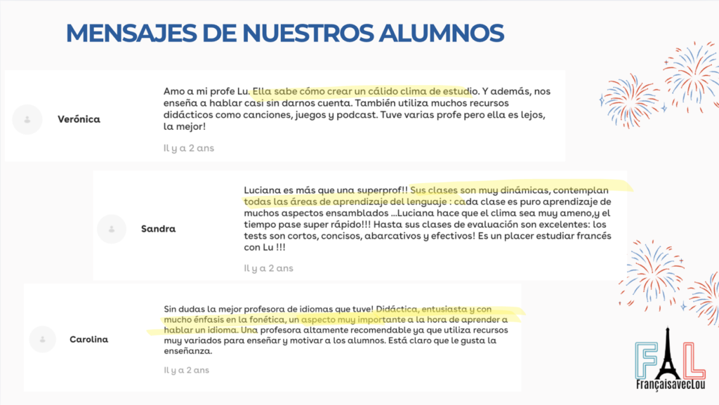 Bonjour ! Soy Luciana, profesora de francésapasionada por la enseñanza de la lengua francesa, su fonética y la didáctica de lenguas extranjeras.